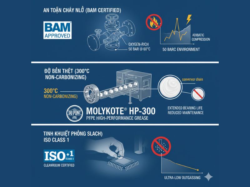 Molykote HP-300 đã đạt chứng nhận BAM trong điều kiện thử nghiệm tại 50 Bar @ 60 oC và 10 Bar @ 300oC